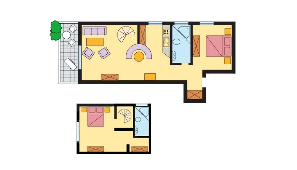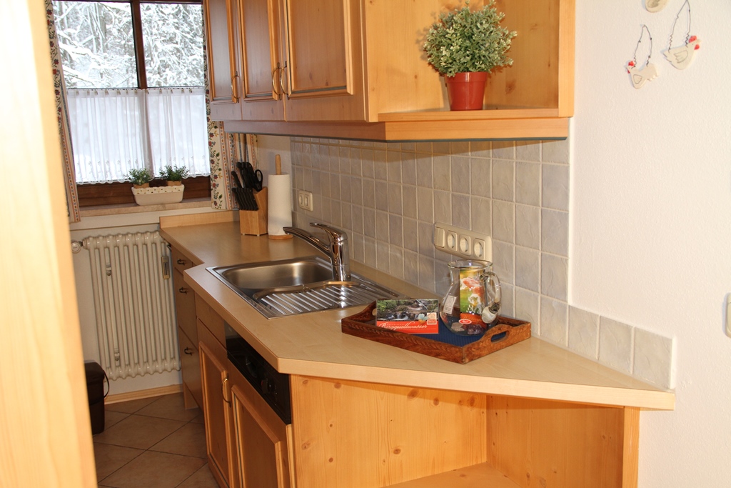 - Küche mit: Spülmaschine, Mikrowelle, Backofen, Kaffeemaschine, Eierkocher, Toaster, Wasserkocher